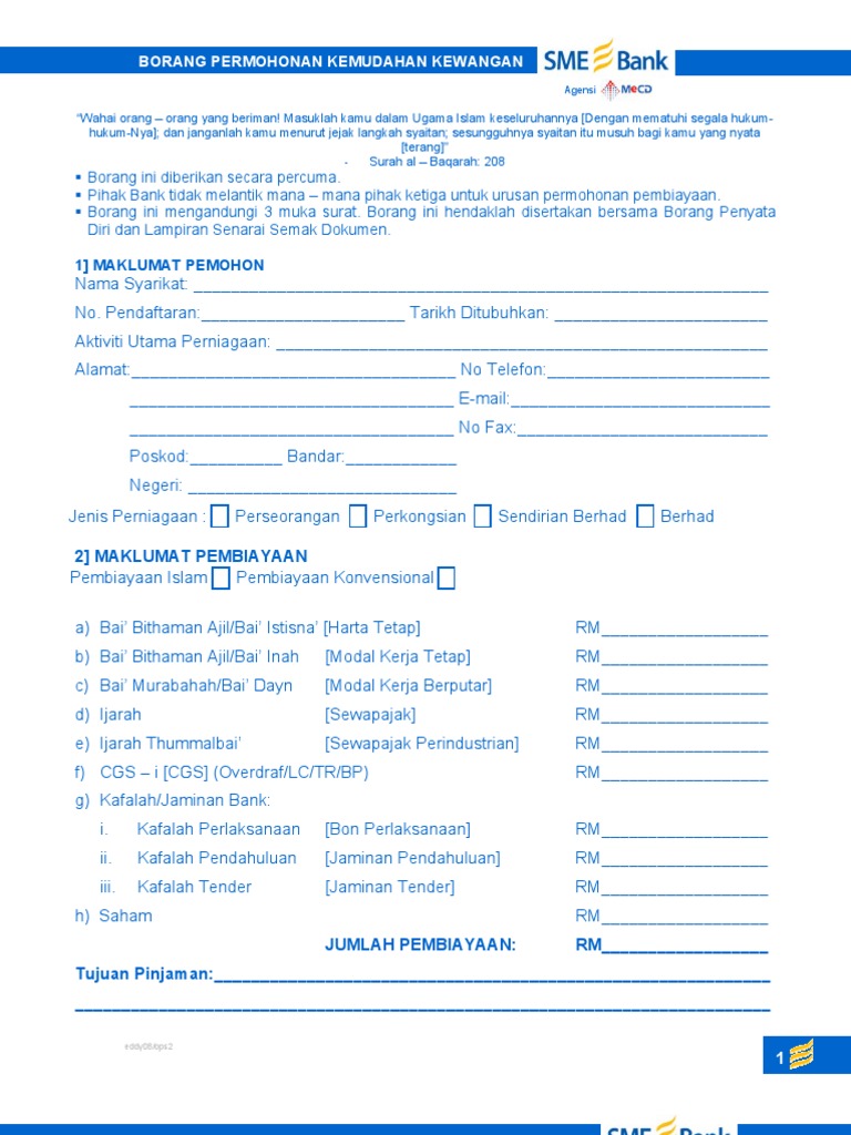 Borang An Pinjaman Sme Bank Pdf